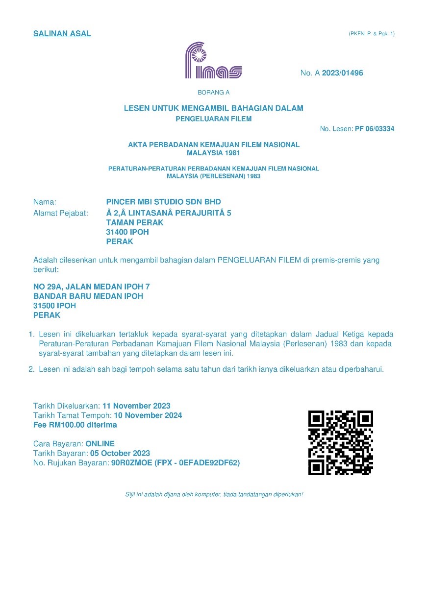 PINCER MBI Studio Sdn Bhd is a newly established joint production company that will collaborate in producing Films, Dramas, Web Dramas, Local and Foreign Advertisements. PINCER MBI Studio Sdn Bhd is a collaborative venture between Majlis Bandaraya Ipoh (MBI) and a Malaysian film production company, FilmForce Studio Sdn Bhd.